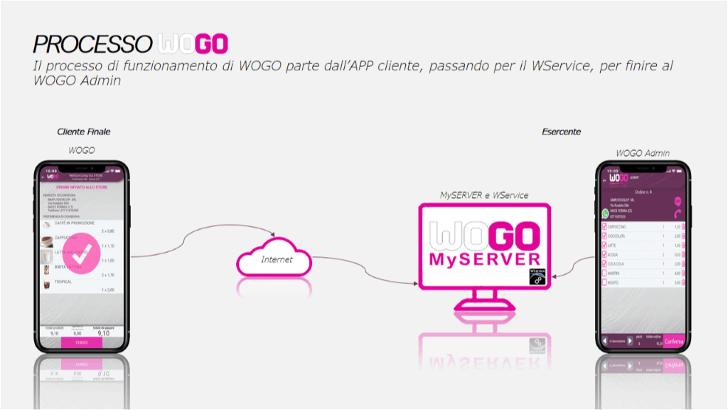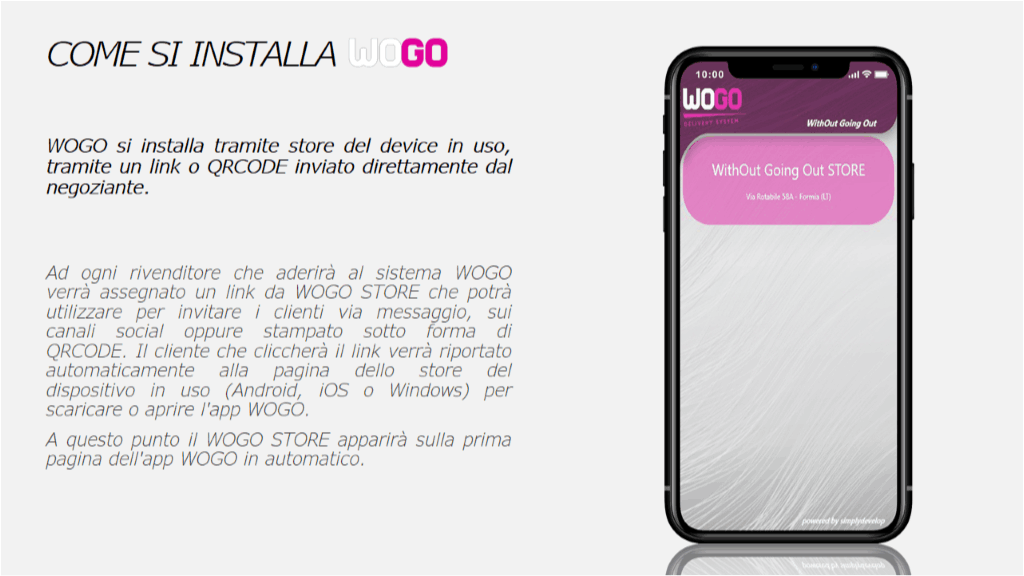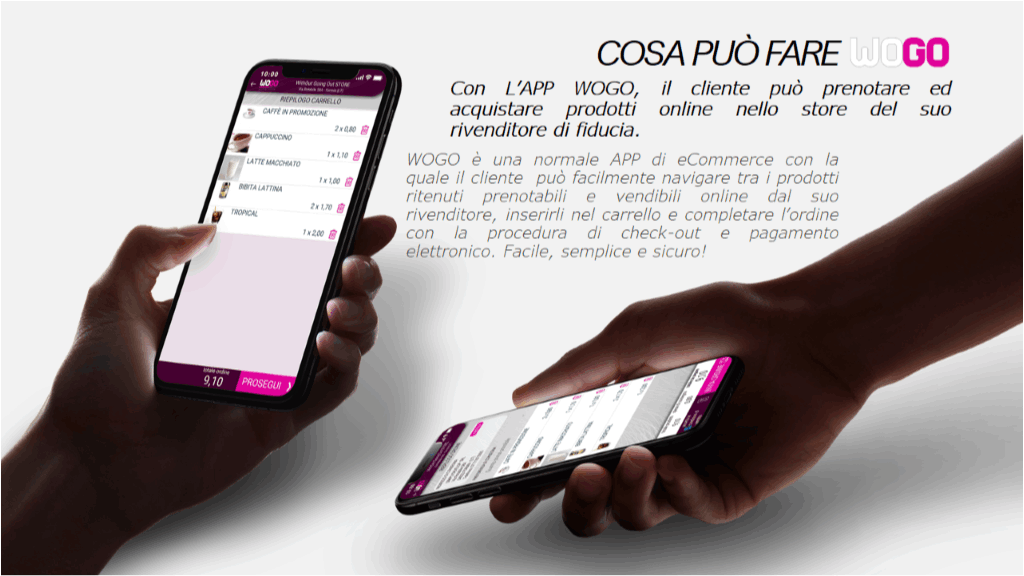 Basta aderire alla piattaforma WOGO, definire quali categorie di prodotti mettere in vendita, pubblicizzare il proprio link WOGO STORE sui canali social o stampato come qrcode. I tuoi clienti potranno creare facilmente un ordine ed interagire direttamente con te, da casa o da lavoro.